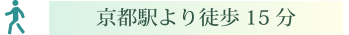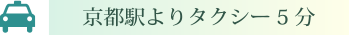 京都駅正面口タクシー乗り場より「西洞院六条 上ル 緑風荘」とドライバーに告げて下さい。約ワンメーター(小型で640円)になります。